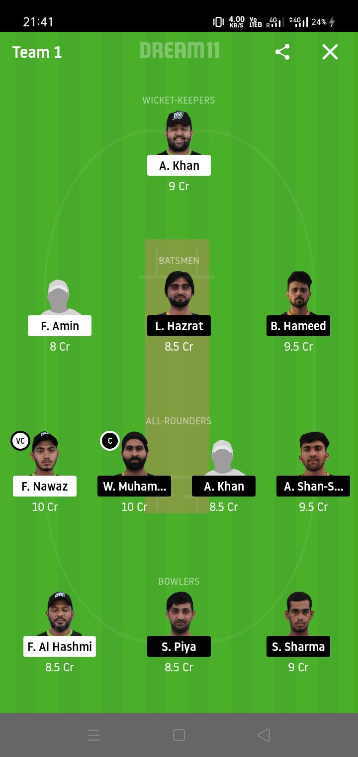 Adnaan Khan, Faisal Amin, Rahman Gull, Aagam Shah, Faizan Sheikh, Shafaqat Ali, Fahad Tariq, Ibthisam Sait, Usman Munir, Fahad Nawaz, Mohammad -Rashid, Fahad Al Hashmi, Abdul -Rehman, Umar Hafeez, Imran Haider