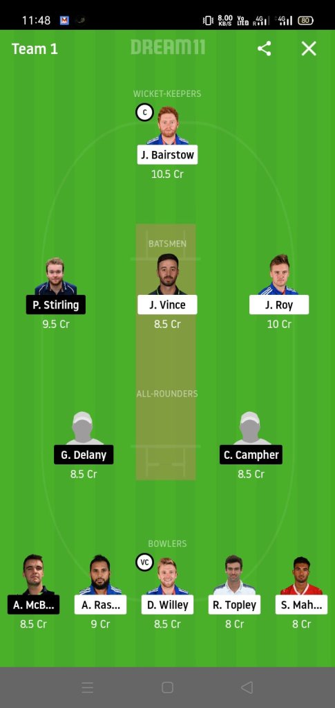 ENG vs IRE Dream11 Fantasy Suggestions