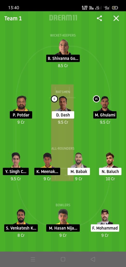Among others, D. Dash will be another important player that can play a key role with bat and ball. And he can also be picked as a captain. Meanwhile, M. Ghulami and BS Gowda could also be considered as captain or vice-captain choice in Grand league teams.